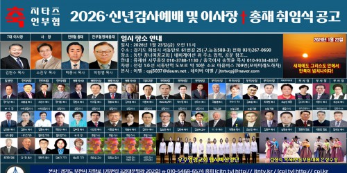 청소년 보호정책(대표 겸 발행인 : 정기남) 경기도 부천시 오정구 지양로 176번길 32, (대운빌라 102호) 대표전화 032)672-3031 등록번호 : 경기, 아50924 | 특수주간신문 발행인/편집인 : 정기남 | 등록일/발행일 : 2007년 10월 17일 사업자번호 : 101-08-94879 | 후원계좌: 우체국 310029-02-152769 (정기남) Copyright ⓒ 2007 크리스찬포토저널(CPJ), Allrights reserved. E-mail:cpj5037@daum.net 편집인 : H.P 010-5468-6574 / 032-672-3031(팩스) |